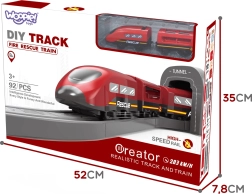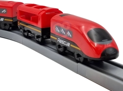 Модерният локомотив на батерии (2× AAA, не са включени) се движи по богато оборудвана писта с мост и тунел за още по-реалистично изживяване.