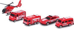 Четири различни пожарни автомобила, хеликоптер и фигурка на пожарникар позволяват на децата да създават вълнуващи спасителни мисии и да развиват въображението си.