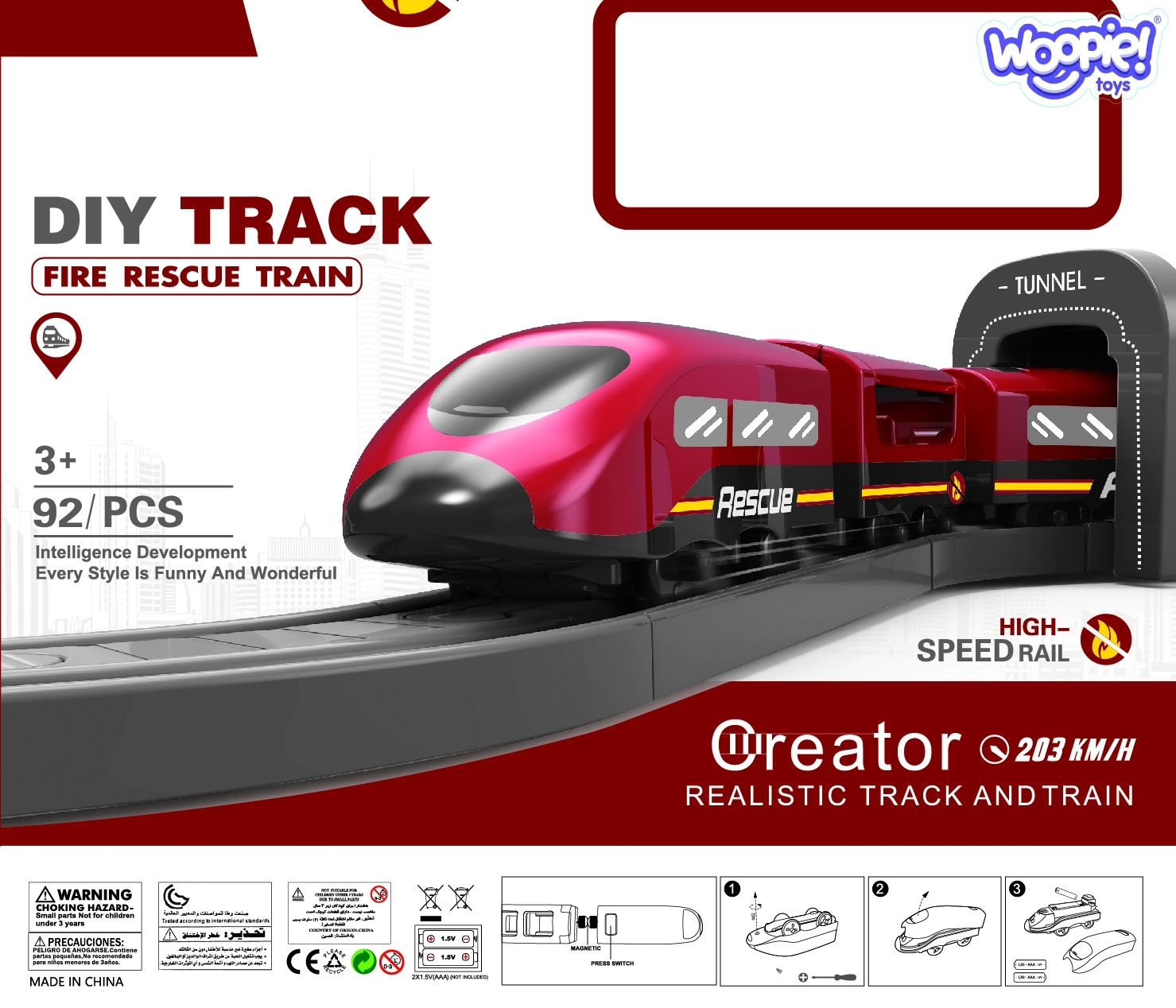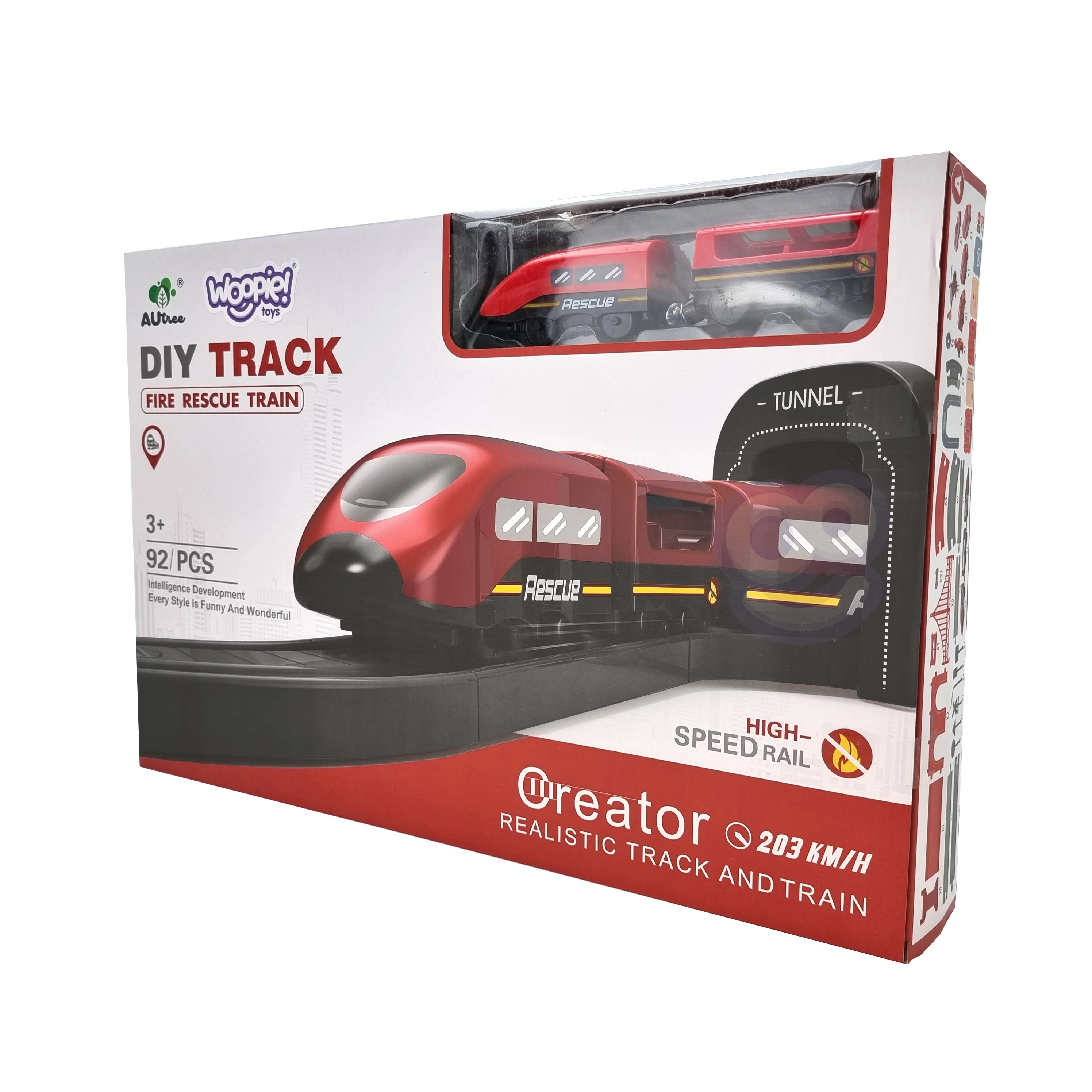 Електрическата пожарникарска писта WOOPIE предлага на децата завладяващи спасителни приключения. Благодарение на локомотива на батерии и множеството детайлни аксесоари ще създадете реалистичен град с депо, мост и тунел. Комплектът е идеален като подарък и осигурява часове творческа игра за деца от 3 години.