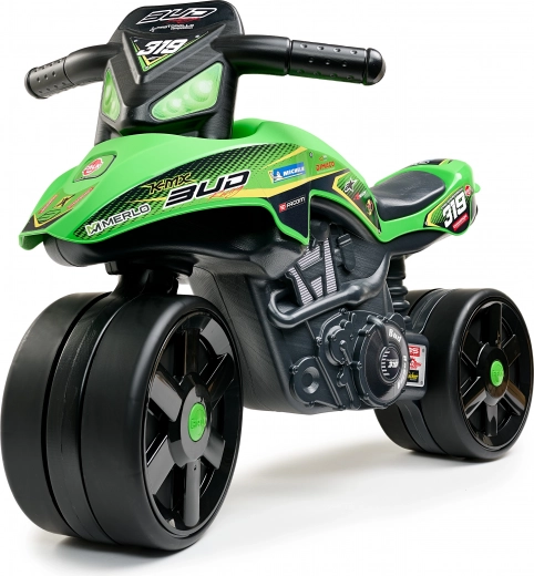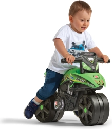 Открийте атрактивното детско баланс-колело мотор в зелено, което подпомага развитието на равновесието, координацията и увереността при първите стъпки. Благодарение на ергономичната форма и широките колела карането е комфортно и стабилно върху различни повърхности.