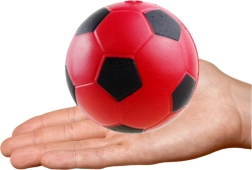 Привлекателна футболна визия и диаметър 6,5 см – отлично приляга в ръката както на деца, така и на възрастни.