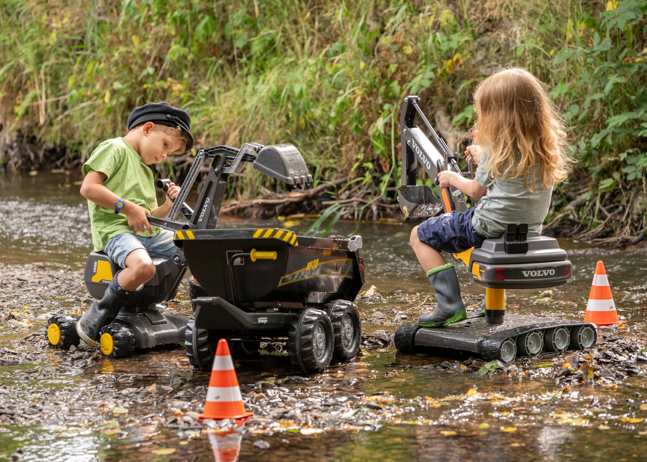 Реалистичният дизайн, вдъхновен от строителната техника на VOLVO, впечатлява малките строители в пясъчника, градината и детската стая. Играта развива координацията, силата в ръцете и въображението – и забавлява за дълги часове.
