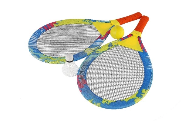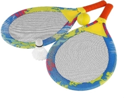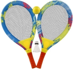 Забавен плажен комплект с хилки за деца и начинаещи, който предлага леки ракети и безопасни аксесоари за игра в двора, на плажа и в парка. Включва мека топка от дунапрен и перце за бадминтон за безопасна игра без риск от нараняване. Благодарение на лекия материал хилките са лесни за боравене дори за по-малки деца от 3 години.