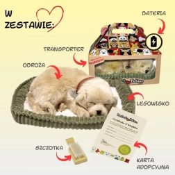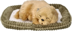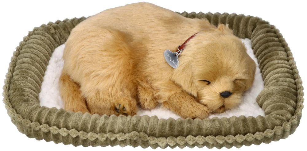 „Осинови дишащо кученце голдън ретривър“ е вълшебен спътник, който успокоява и забавлява. Спящото кученце с нашийник и верни детайли изглежда като живо, а нежното „повдигане на коремчето“ при дишане е естествено и деликатно. В комплекта има и удобно легълце, за да има щенцето своето безопасно кътче.