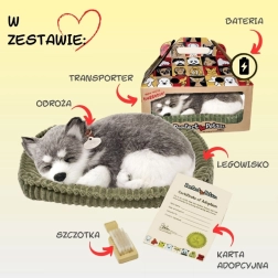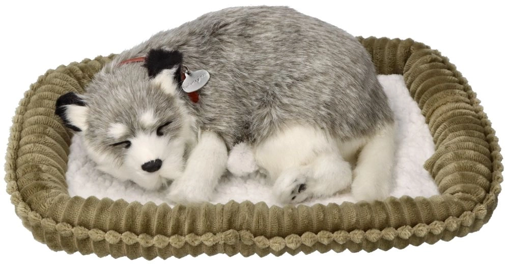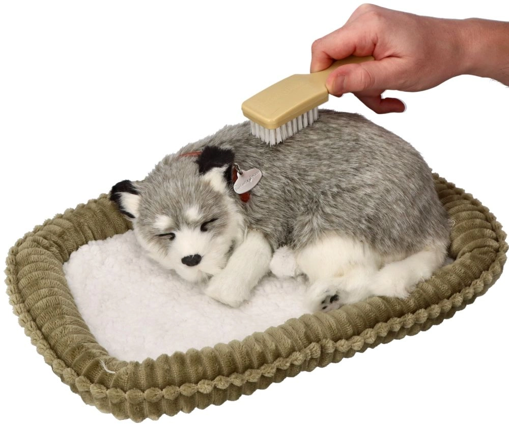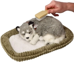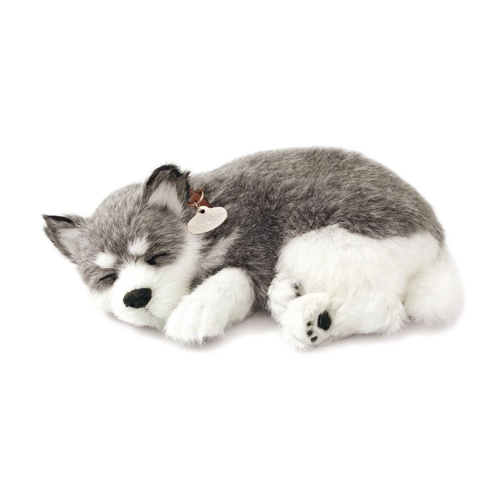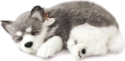 Търсите мила играчка, която да зарадва и същевременно да успокои? Това дишащо плюшено кученце Аляски хъски изглежда невероятно автентично – нежно „отморява“ в легълцето и със своя реалистичен външен вид и спокоен израз създава приятна атмосфера. Меката плюш направо приканва към галене, а кученцето е чудесен спътник за детската стая и за хола като декорация.