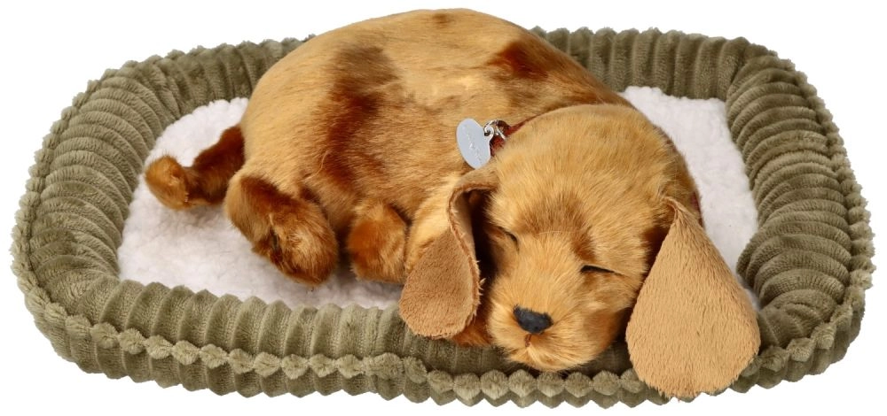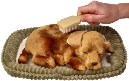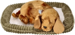 Това реалистично спящо кученце вярно наподобява домашен любимец – включително нежното „дишане“, което носи усещане за спокойствие и сигурност. Благодарение на качествения плюш е приятно на допир и ще стане любим спътник за почивка и игра.