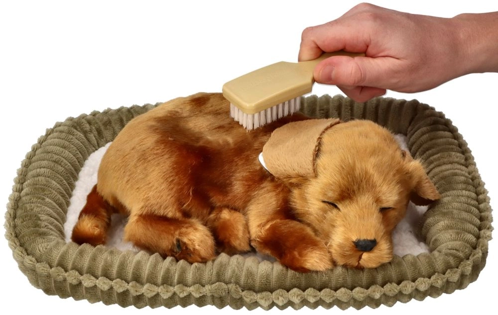 Плюшеното кученце сладко подремва и наподобява нежно „дишане“, което успокоява и създава усещане за истинско присъствие на домашен любимец. Идеално за вечерно успокояване и следобедна почивка.