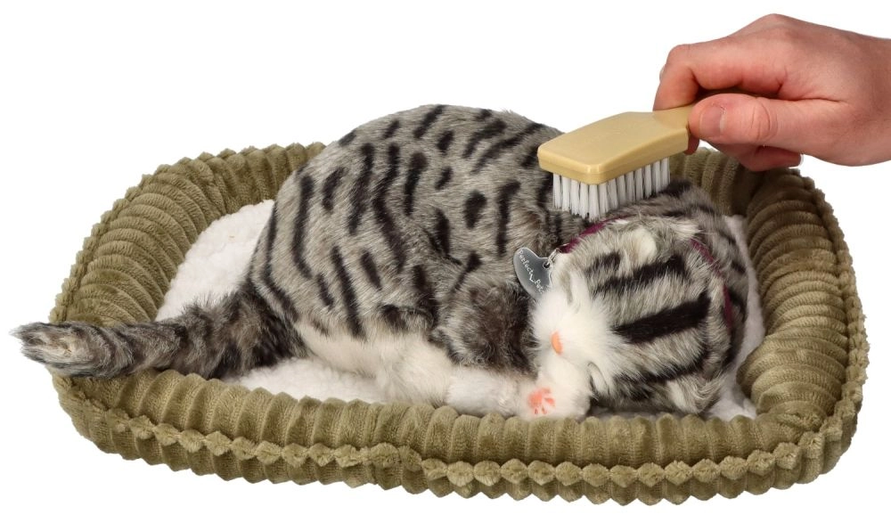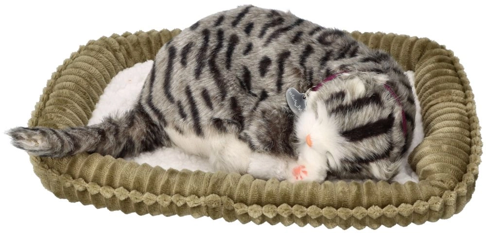 Търсите мил спътник за детската стая или уютна декорация за интериора? Това дишащо плюшено котенце – сив тигров котарак изглежда невероятно реалистично, нежно „отдъхва“ и създава усещане за спокойствие и уют. Благодарение на меката материя и верния тигров шарен рисунък изглежда като истинска спяща котка.