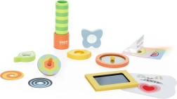 С този образователен комплект от марката Classic World можете да представите на децата си тайните на оптичните илюзии. Комплектът съдържа 16 различни компонента, които ще заинтригуват вашето дете и ще стимулират любопитството му. Всички елементи са изработени от висококачествена дървесина и се отличават с атрактивна цветност.