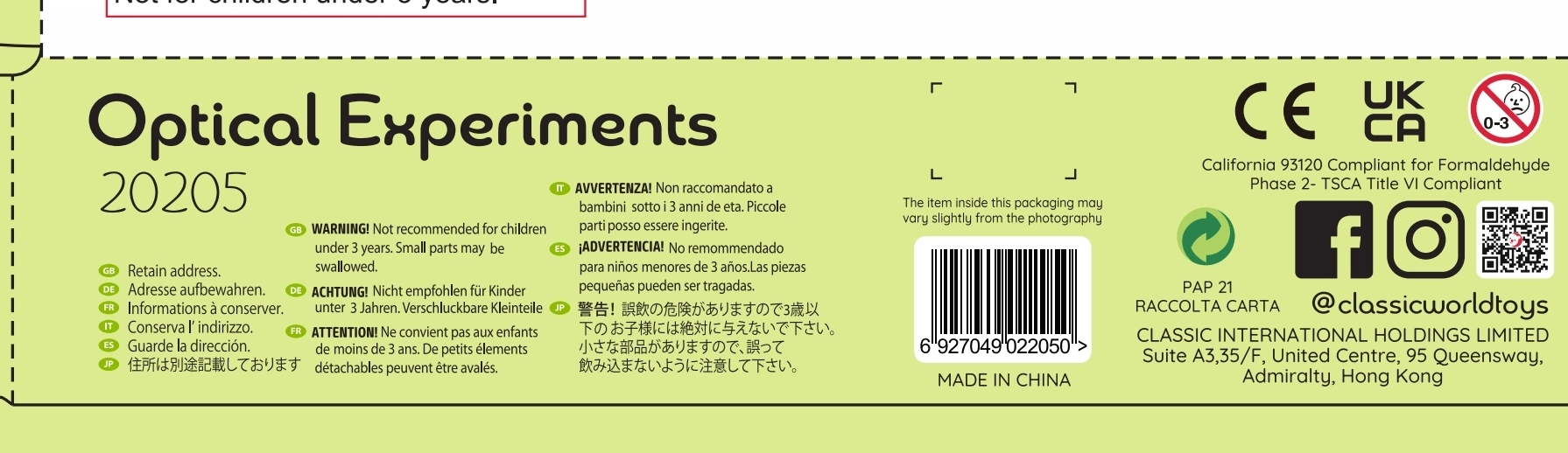 Този комплект е идеален за първите стъпки в света на науката и оптичните илюзии. Помага за развитие на практическите умения и креативността на децата.