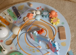 Масичката включва ксилофон, звънчета и други музикални елементи, които пробуждат интерес към музиката и ритъма.