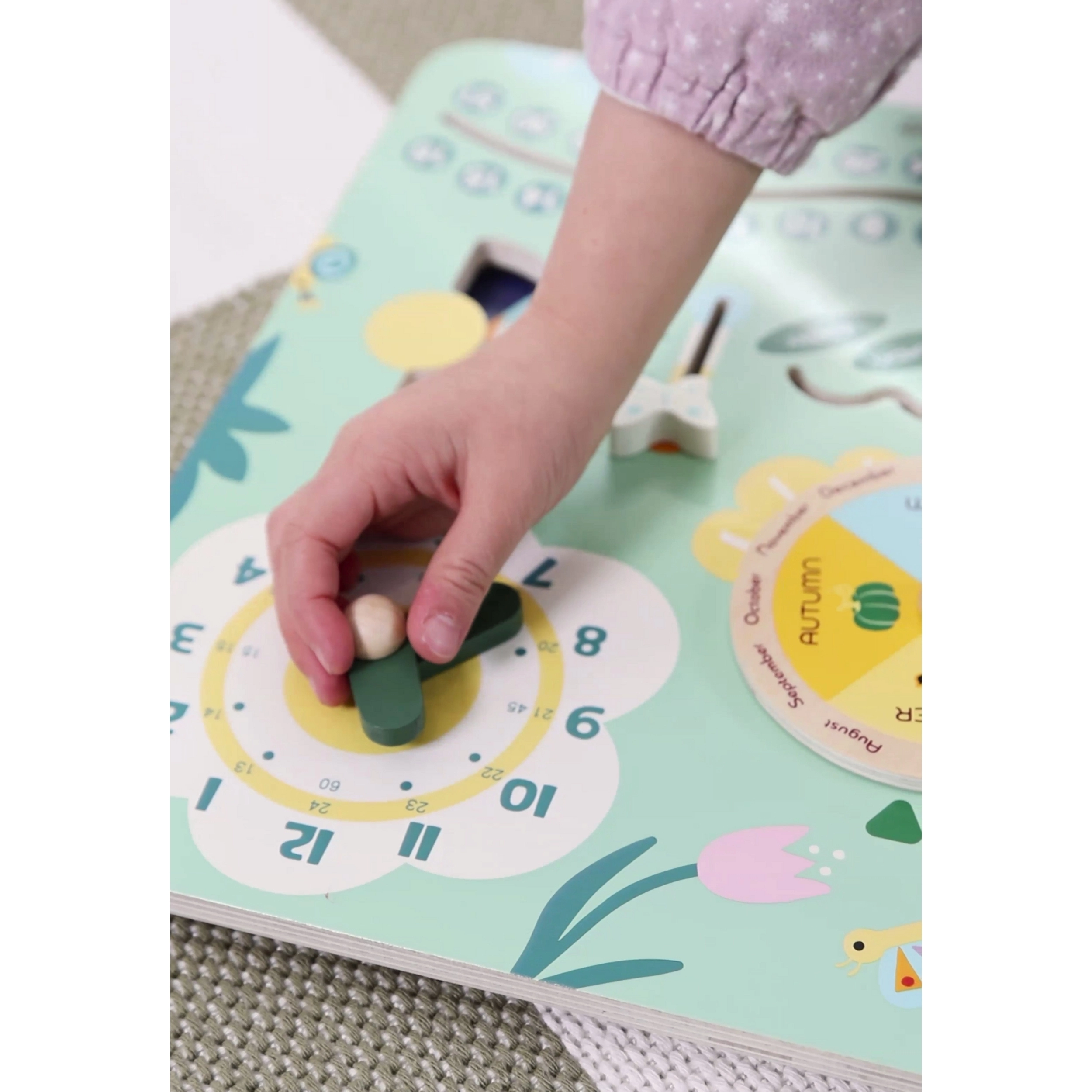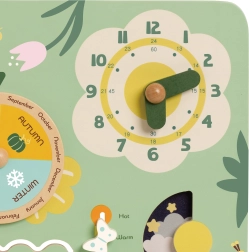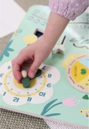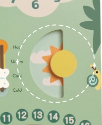 Този пъстър и ясен дървен календар помага на децата лесно да разберат основите на времето и да се запознаят с английски думи. Идеален е за домашно обучение и за нуждите на детската градина: