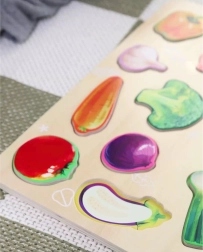 Дървеният Монтесори пъзел със зеленчуци е идеален избор за първа образователна играчка. Цветните и ясни илюстрации мотивират децата да назовават отделните видове зеленчуци и естествено насърчават интереса към здравословно хранене. Размерът на елементите е съобразен с малките детски ръчички.