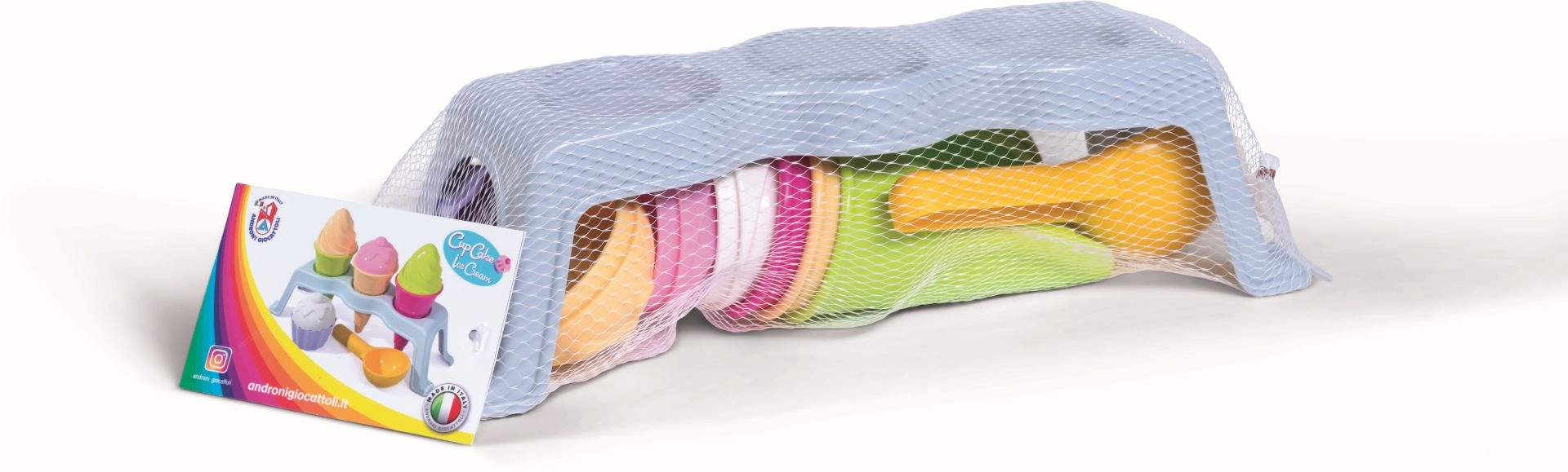 Осигурете на децата креативно забавление в пясъчника с тематичния комплект ANDRONI. Цветната сладоледена композиция подпомага фантазията и фината моторика при направата на фунийки и кексчета. Леката, издръжлива и безопасна конструкция от качествена пластмаса е идеална за ежедневна игра навън и у дома с кинетичен пясък.