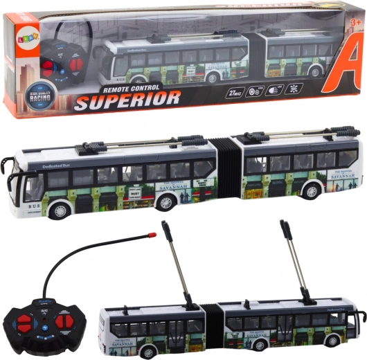 Открийте забавлението в стил градски транспорт. Този дистанционно управляван тролейбус с дължина 36 cm предлага реалистично LED осветление (предна лампа и мигащи червени и сини светлини) и надеждно управление с честота 27 MHz. Издръжливото пластмасово тяло и внимателните детайли гарантират дълъг живот и атрактивен външен вид.