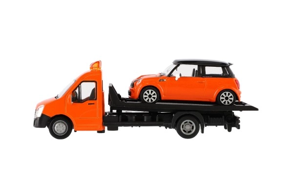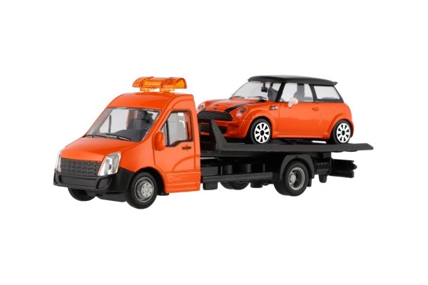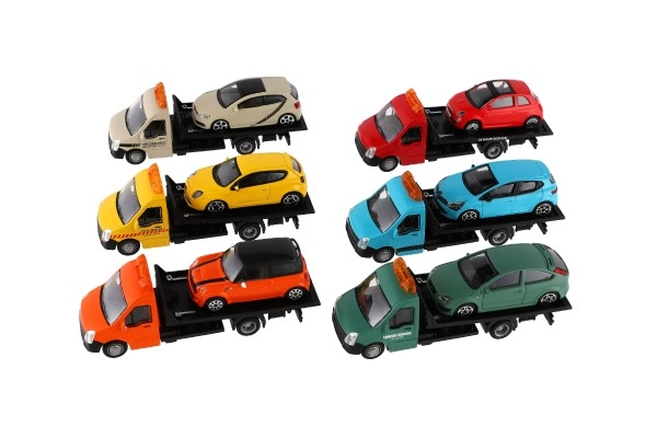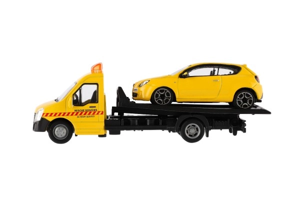 Моделът е дълъг 21 cm и включва платформа за пътна помощ за качване на включения автомобил – идеален за сценки от градския трафик, спасителни акции и превоз на превозни средства. Благодарение на качествената изработка е отличен избор за колекционери и за деца от 3 години.