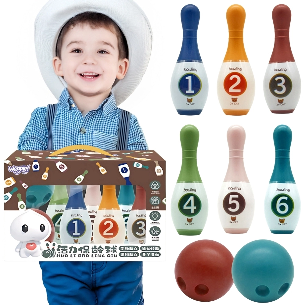 Открийте класическата семейна игра в модерна и цветна визия. Цветните кегли с номера WOOPIE ще донесат много радост и движение във вашия дом. Благодарение на лекия материал и цифровото означение са подходящи за първо запознаване на децата както с боулинга, така и с числата – по забавен начин.