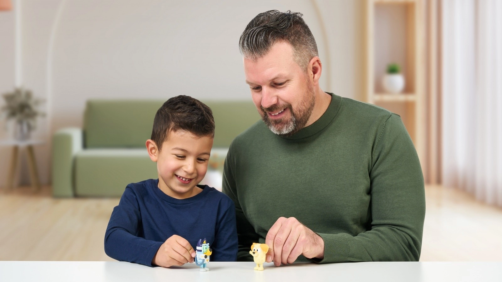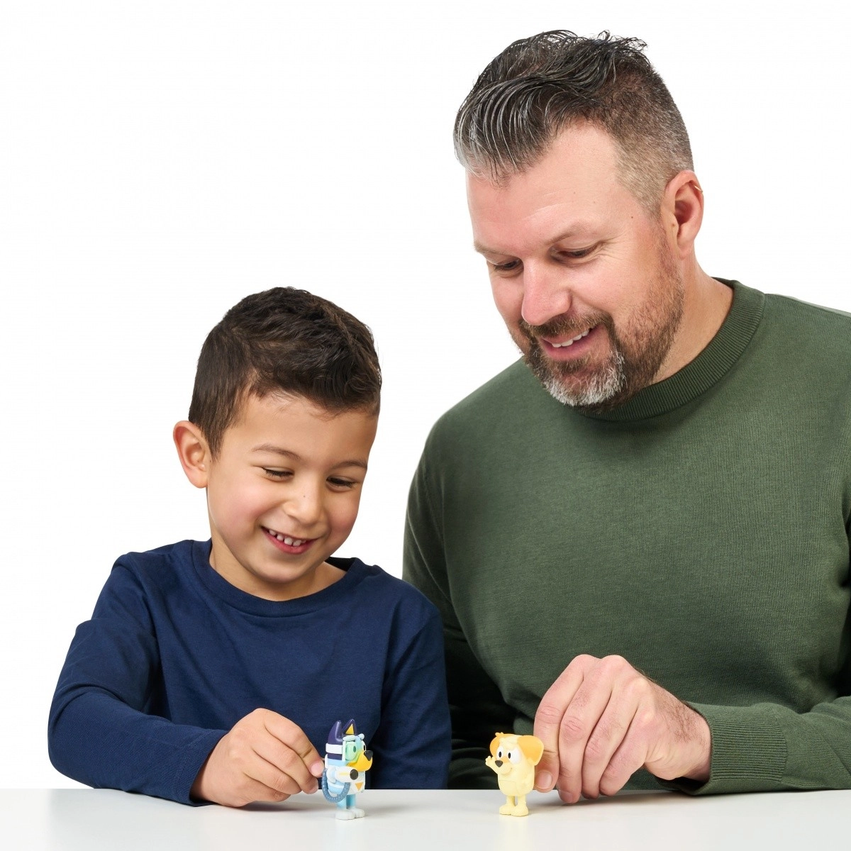 И двете фигурки имат подвижни части, така че децата могат лесно да ги позират и да пресъздават любими сцени от сериала BLUEY.