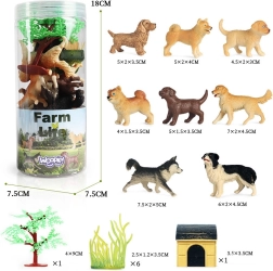 Сетът е проектиран да бъде едновременно образователен и забавен – децата се учат да разпознават животни, развиват фината моторика и социалните умения чрез измисляне на истории. Комплектът съдържа всичко необходимо за създаване на миниатюрна среда за кучетата, включително дърво, растения и кучешка колиба.