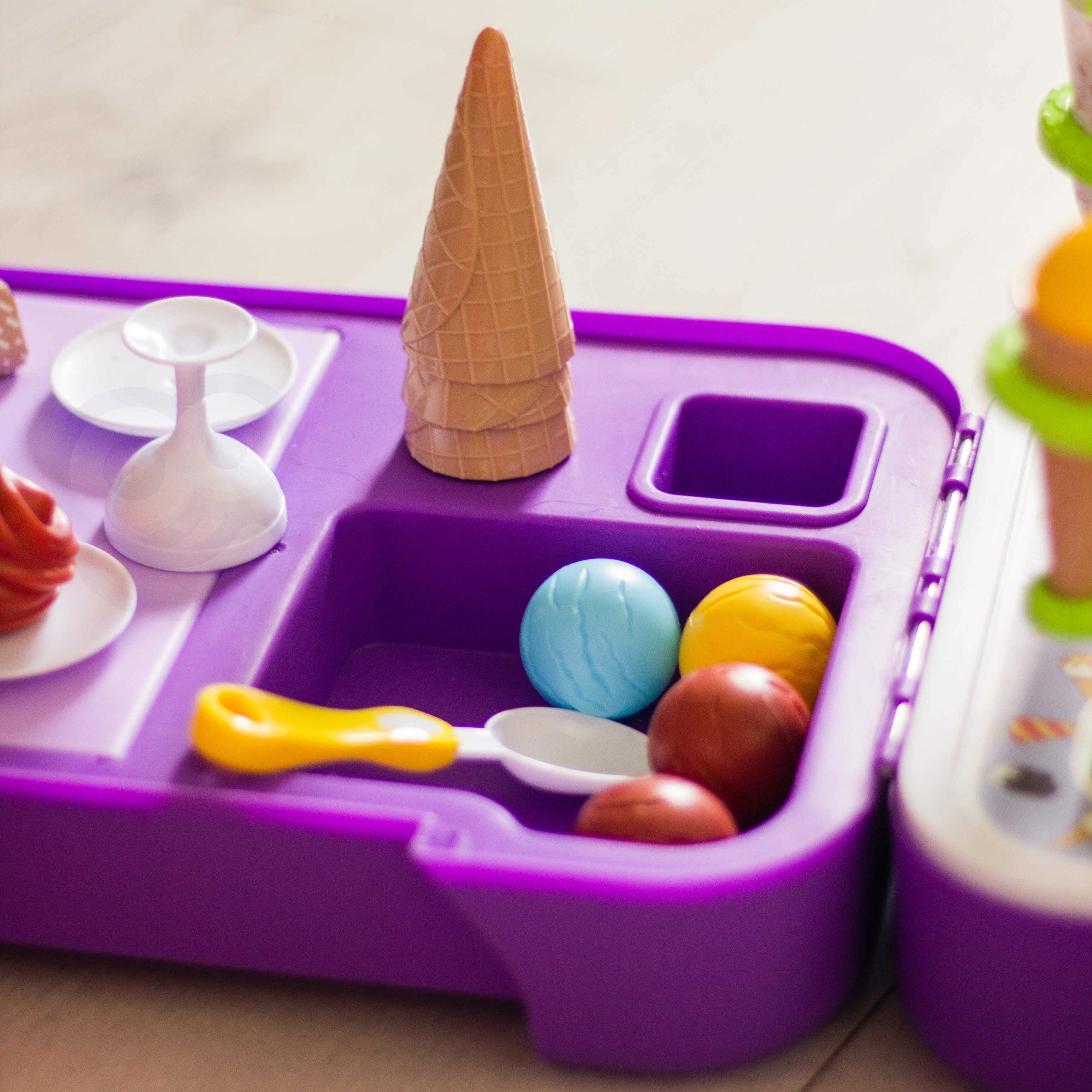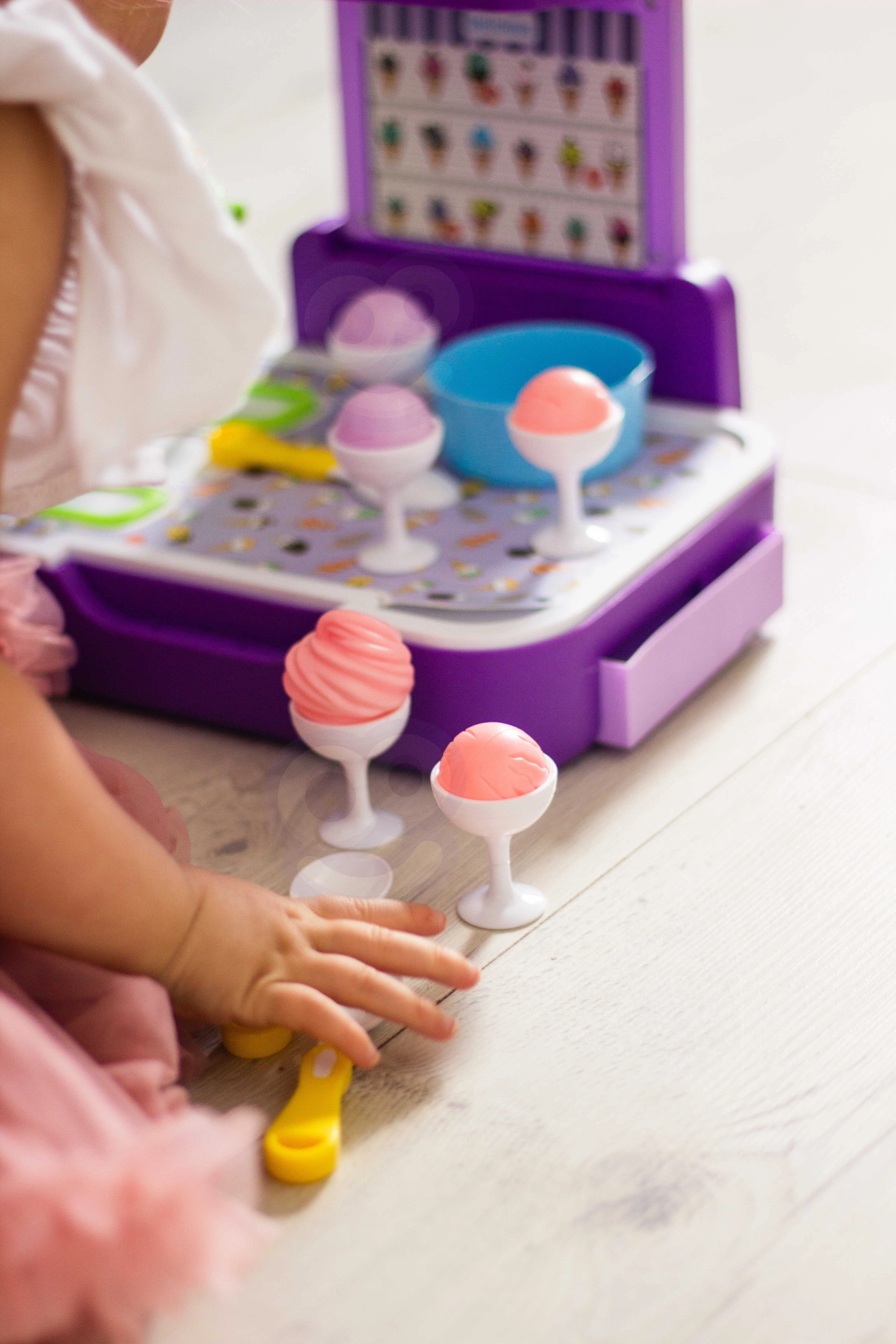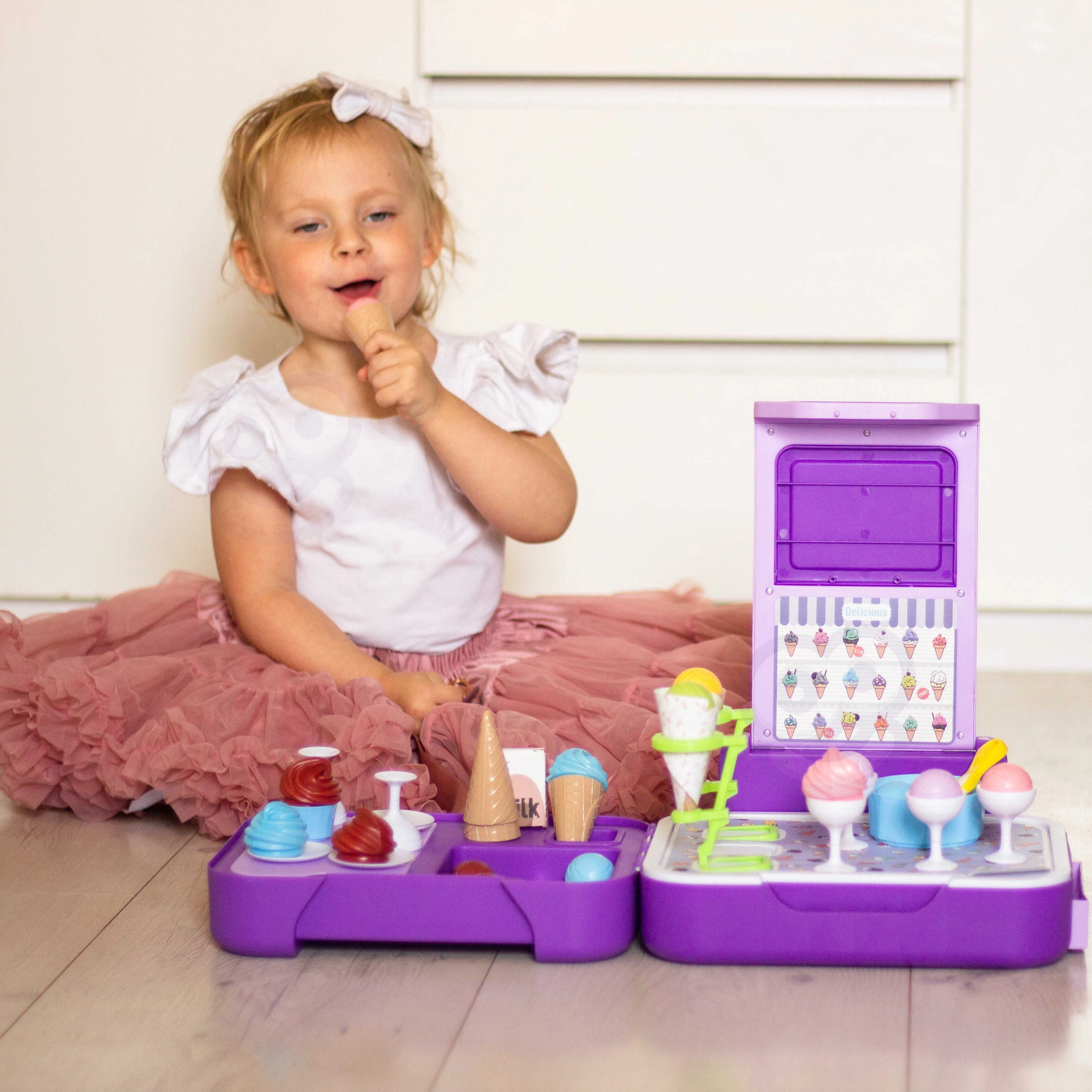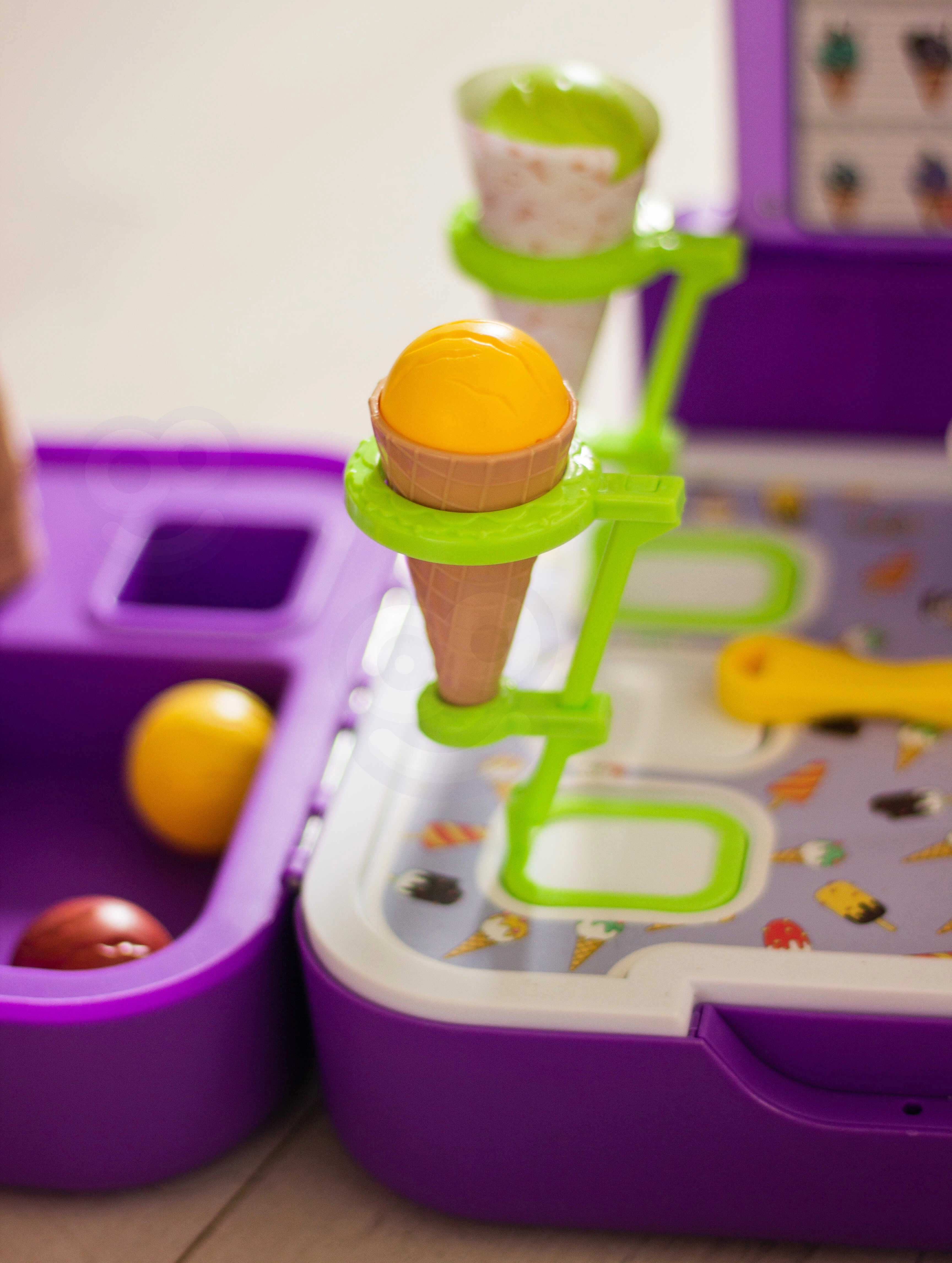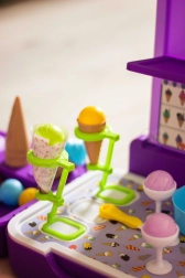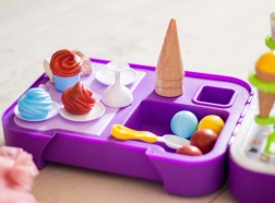 Щандът за сладолед позволява на децата да преживяват радостни моменти, играейки на сладкарница за сладолед, което допринася за развитието на тяхната креативност и социални умения.