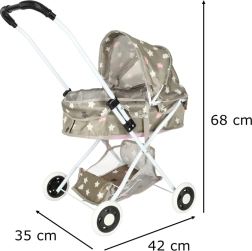 Осигурете на детето си идеална среда за отглеждане и грижа за любимата му кукла с тази елегантна количка. Тя е проектирана да наподобява перфектно истинска бебешка количка, като позволява на децата да навлязат в света на ролевите игри. С дълбока гондола и регулируема дръжка е идеална за разходки у дома и навън.