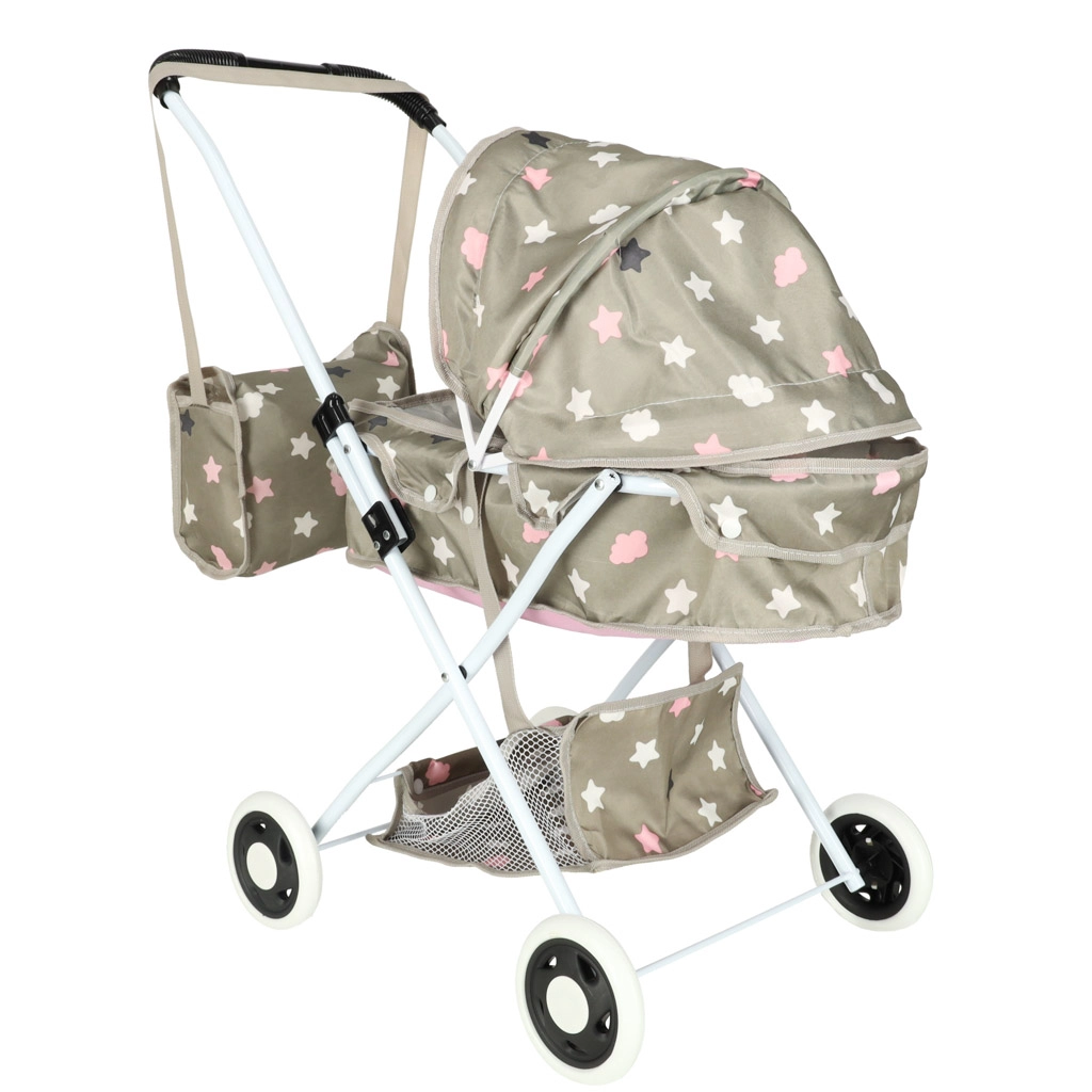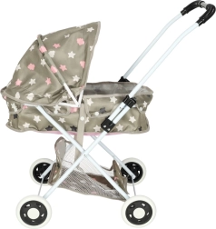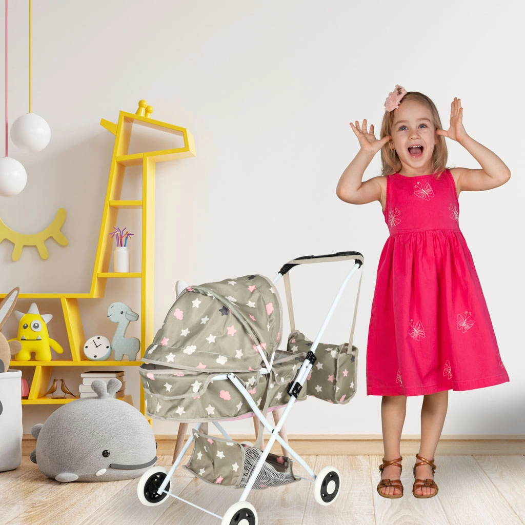Стилна дълбока количка за кукли ще зарадва всяка малка грижеща се майчица. Изработена е с внимание към реалистичния дизайн и функционалността, което подпомага детското въображение и креативност по време на игра.