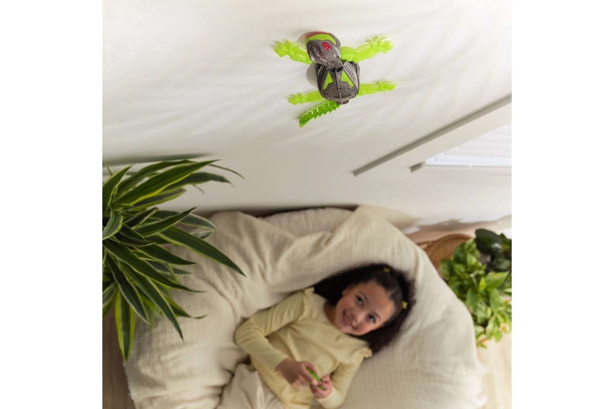 Изживейте адреналиново забавление с дистанционно управлявания гекон, който благодарение на технологията Wall Climber се катери по стени и тавани. Предлага реалистични движения, многопосочно управление за бързи маневри, светещи LED очи и зареждане през USB‑C. Страхотен избор за деца от 4 години и за игриви възрастни.