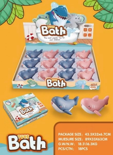 Забавна навиваща се акула за вана с дължина 11 см носи на децата много радост по време на къпане. Достатъчно е да я навием и да наблюдаваме как се движи във водата. Предлага се в два цветови варианта – син и розов. Идеална играчка за развитие на моториката и забавление във ваната.