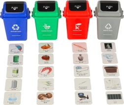 Открийте умния и забавен път към екологията. Тази образователна игра запознава децата с принципите на разделното събиране на отпадъци чрез четири цветни кошчета и 108 илюстрирани карти с предмети от ежедневието. Ученето е естествено, забавно и мотивиращо – кой ще постави най-бързо правилния отпадък в правилния кош?