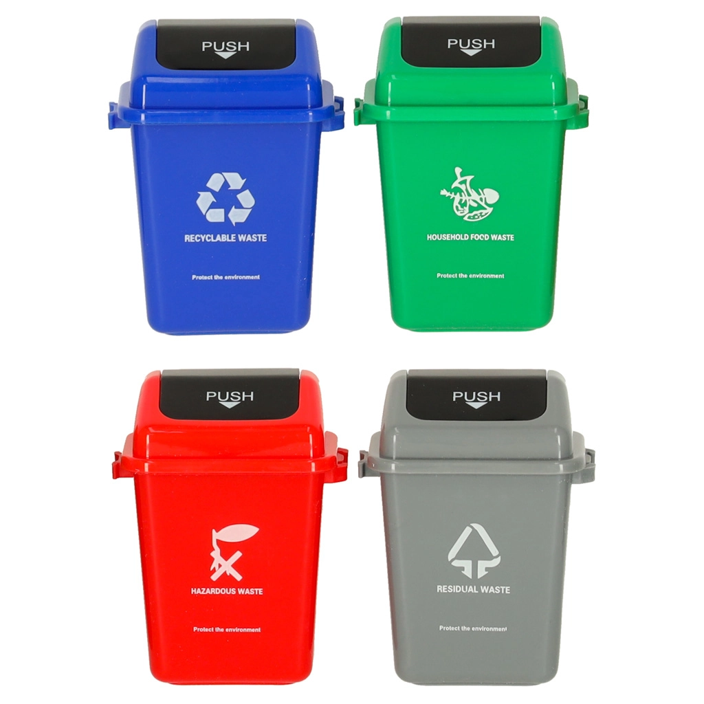 - 4 свързващи се кошчета в цветове: син, зелен, червен, сив