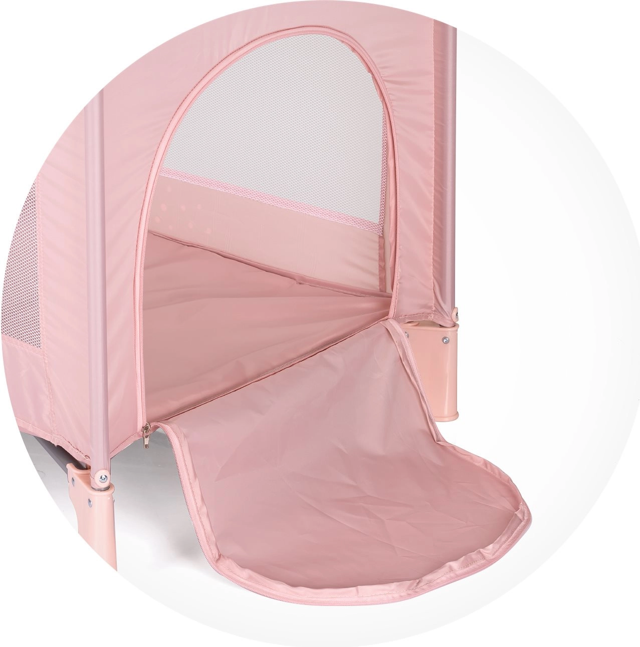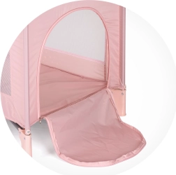 Добре обмислени детайли като пластмасови капаци на ръбовете повишават безопасността, издръжливите материали удължават експлоатационния живот, а игривият дизайн радва децата. Кошарата е произведена в съответствие с европейския стандарт за безопасност EN 716-1.