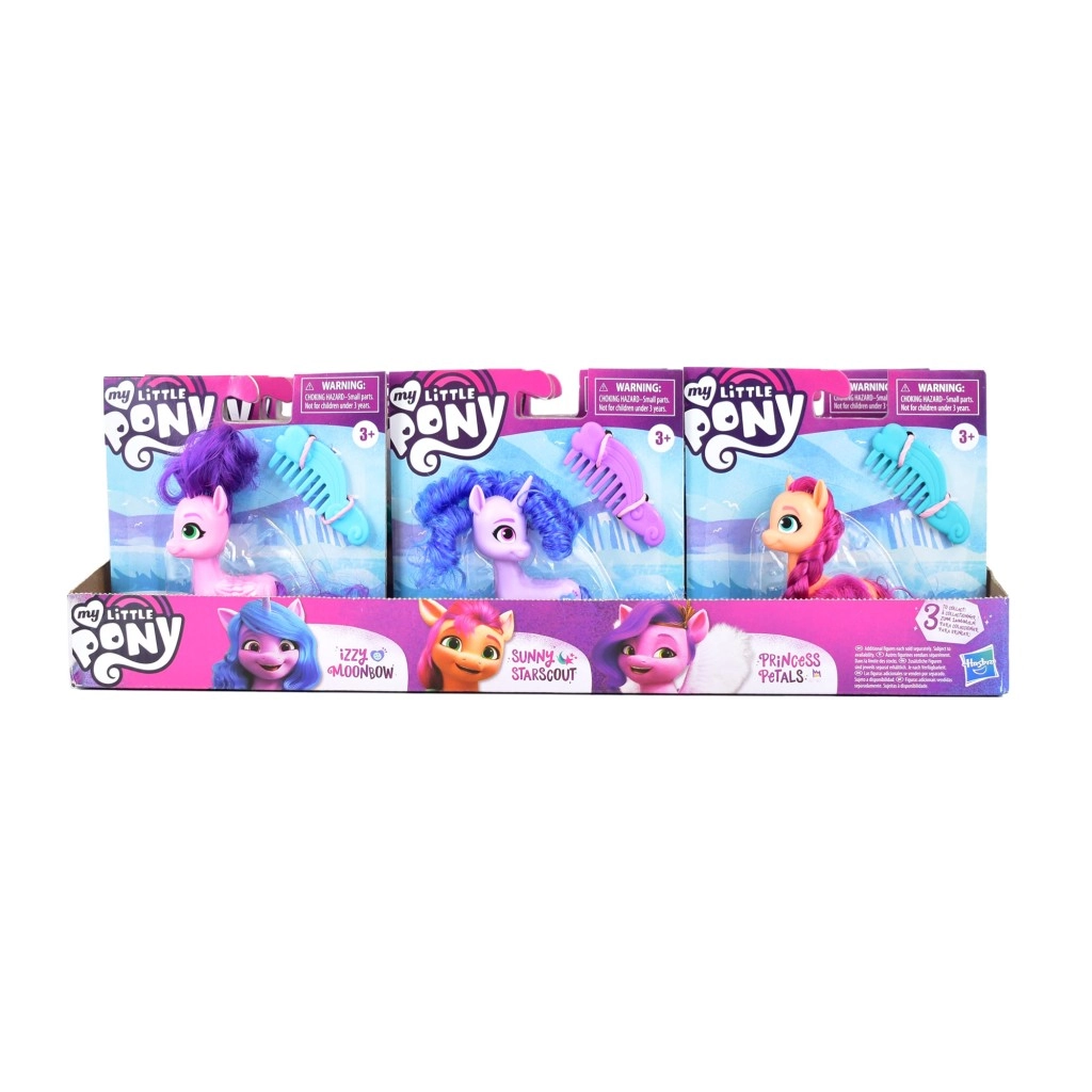 Влезте в цветния свят на приятелството и фантазията с фигурката MY LITTLE PONY. Пластмасово пони/еднорог с мека грива, готова за разресване и стилизиране, за да могат децата да създават свои приказни истории, изпълнени с магия. Компактният размер е идеален за детска ръчичка и за пътуване.