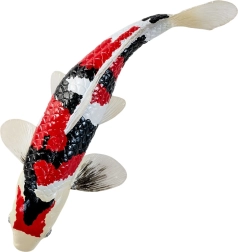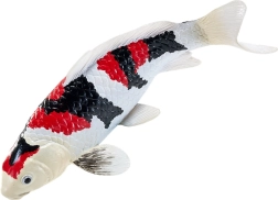 Типичната комбинация от бяло, черно и червено правдоподобно пресъздава истинските Showa кои и подчертава детайлите на люспите и перките.