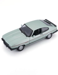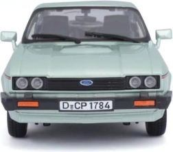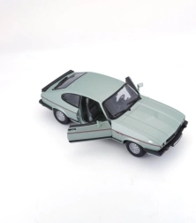 Метален модел Ford Capri 1982 в мащаб 1:24 в елегантен светлозелен цвят. Идеален за колекционери и любители на класически автомобили благодарение на автентичната изработка и детайлите.