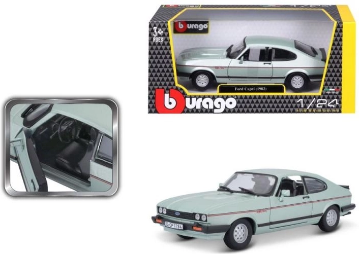 Този детайлен модел Ford Capri от 1982 г. предлага на ентусиасти и колекционери изключителна изработка и качество, характерни за Bburago. Моделът е подходящ за експониране и е вярно пресъздаване на реалния автомобил с внимание към всеки детайл.