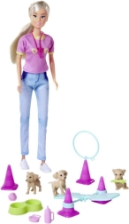 Открийте света на въображаемата игра с куклата Стефи като треньорка на кучета. Този комплект предлага не само кукла със стилно облекло, но и редица аксесоари, включително три малки кученца и тренировъчни пособия като конуси и купички. Дължината на куклата е 29 см.