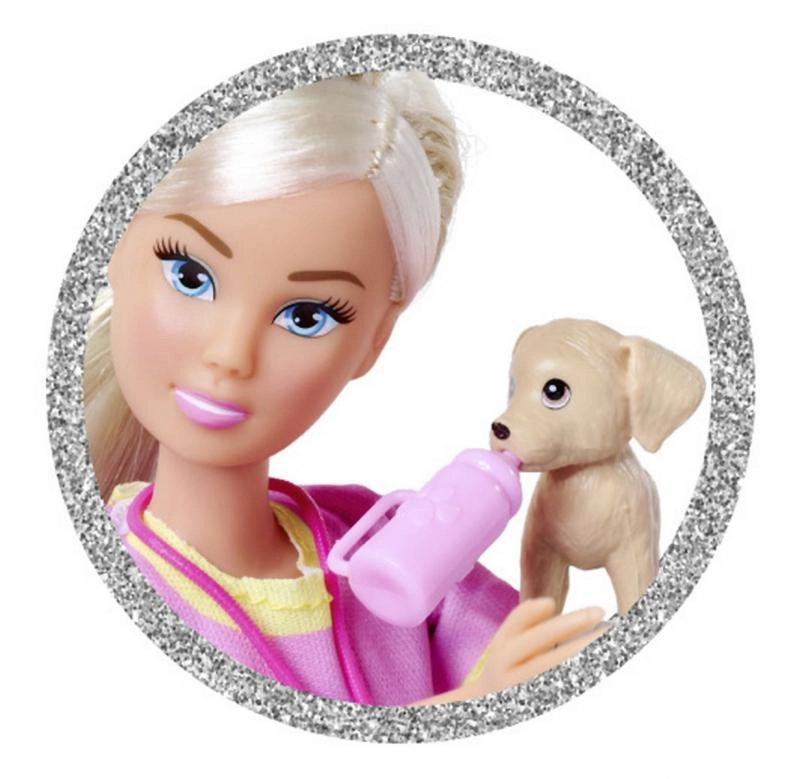Комплектът съдържа кукла Стефи, облечена в розов топ и дънки, готова за тренировка на кучета. Креативна игра за всички възрастови групи.