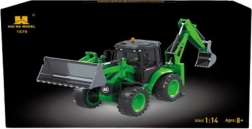 RC багер-товарач в мащаб 1:14 ще впечатли всички ентусиасти на строителни превозни средства. Потребителят има възможност за движение напред, назад и завиване, както и прецизно управление на предната кофа и задния багер. Този модел реалистично пресъздава истинските строителни машини, което гарантира автентични изживявания при игра.