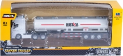 Този модел на товарен камион с цистерна, изработен в мащаб 1:50, е детайлна миниатюра на реално транспортно средство, предназначено за превоз на течности. Изработен е от висококачествен метален сплав и устойчив пластмасов материал, което гарантира здрава конструкция, издръжливост и внимание към детайла. Идеален е за колекционери и всички, които ценят реалистичните товарни превозни средства.