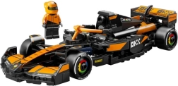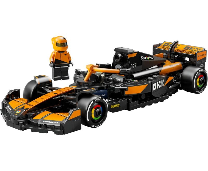 Постройте емблематичния болид от сезон 2024 с модела LEGO Speed Champions McLaren F1 Team MCL38. Този комплект за деца от 10 години и възрастни фенове предлага автентични детайли като отворяем кокпит с халото, задно крило, спонсорски стикери и по-широки задни гуми Pirelli. Включена е и минифигурка на пилот на McLaren за незабавни състезателни приключения и впечатляващо изложение.