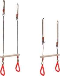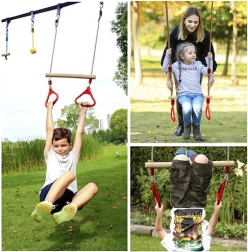 Лесен монтаж позволява бързо окачване на трапеца на куки, греда или клон на дърво, което гарантира лесно преместване и забавление както на закрито, така и навън.