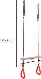Трапецът предлага възможност за регулиране на дължината на въжетата, което улеснява адаптирането към нуждите на различни среди и ръста на детето.