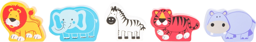 Локомотивът и вагончетата се свързват с магнити, така че децата лесно пренасят животните и могат да създават свои истории от зоопарка.