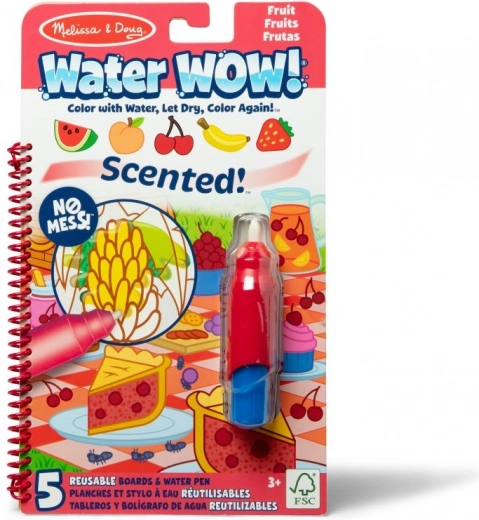 Ароматните водни книжки за оцветяване Water WOW! носят на децата творческо забавление без боички и петна. При навлажняване картинките с плодове се оцветяват веднага, а след изсъхване избледняват, така че могат да се използват отново и отново. Компактният спирален блок с включена водна писалка е чудесен спътник за път.