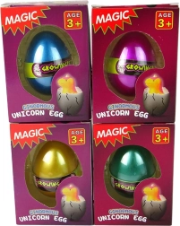 Започнете вълшебното шоу: достатъчно е яйцето да бъде напълно потопено в съд с вода и в рамките на 24–48 часа ще започне леко да се напуква. След още 48–72 часа ще се появи сладък еднорог, който ще продължи да расте във водата. Идеално забавление за деца и възрастни, които обичат експерименти и изненади.