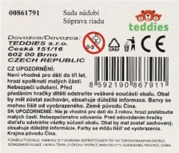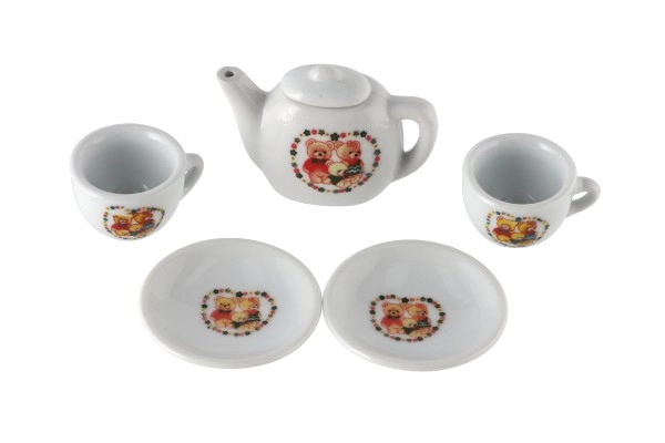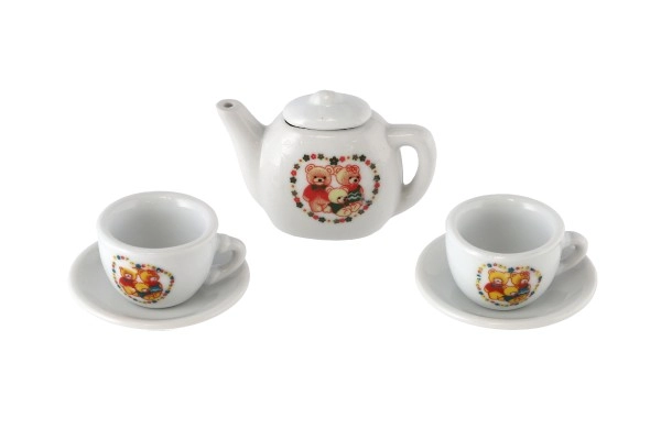 Комплектът включва чайник, чашки и чинийки с очарователни мотиви на мечета и животни, които грабват вниманието от пръв поглед. Компактните размери 18 × 11,5 × 3,5 cm улесняват съхранението и пренасянето.