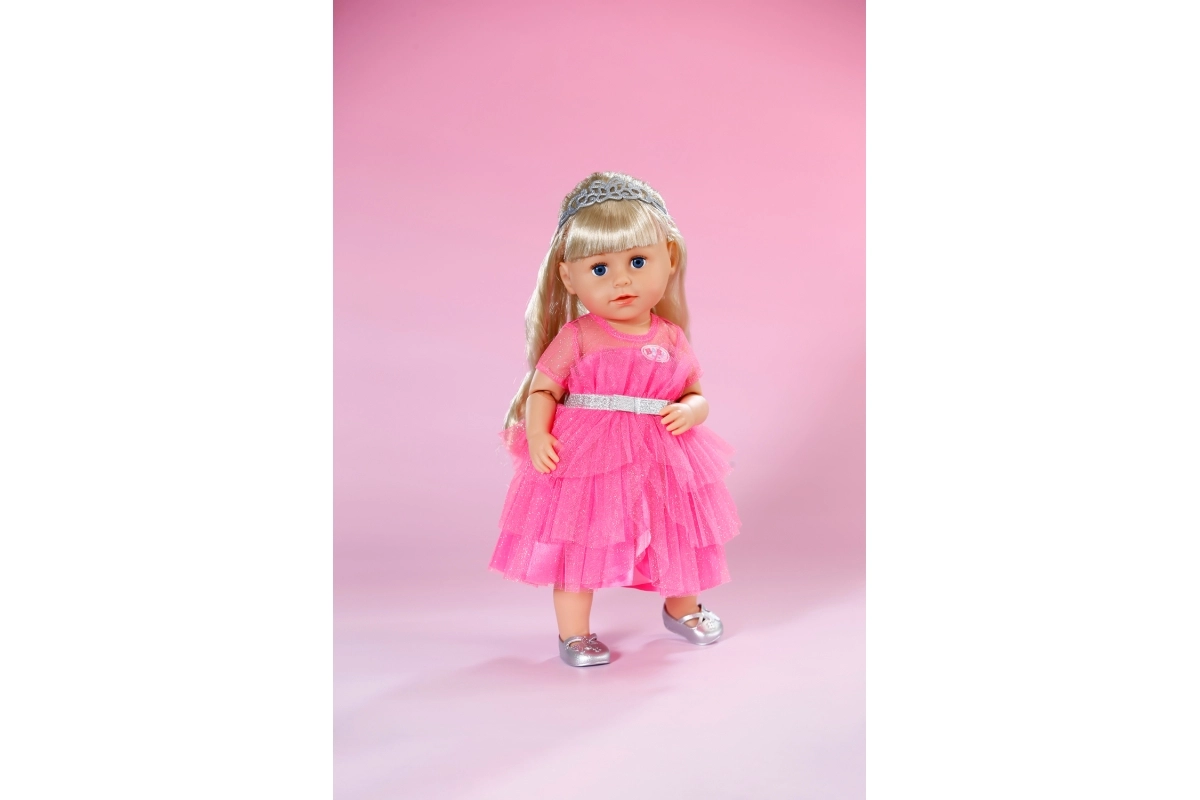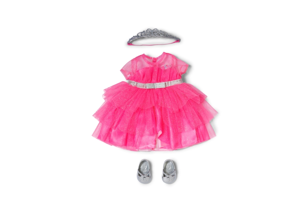 Комплектът е проектиран за кукли BABY born с размер 43 см и подпомага развитието на креативността, фината моторика и социалните умения. Децата лесно могат да комбинират рокличката с други аксесоари и да създават нови принцески стилизации.