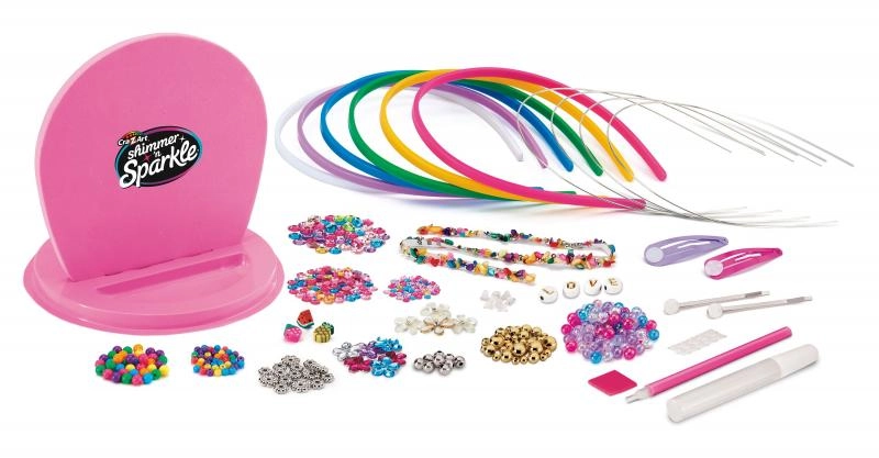 Shimmer 'n Sparkle предлага креативен комплект за деца, който позволява създаване на блестящи обръчи за глава и аксесоари за коса. Комплектът, който насърчава креативността и фината моторика, съдържа всичко необходимо за изработка на стилни аксесоари.