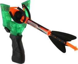 Открий вълнуващо забавление с практичния стрелкови комплект – прашка и 3 свирещи стрели. Достатъчно е да прицелиш и изстреляш: пробвай стрелба надалеч, на височина или си постави собствена мишена. Свирещият ефект по време на полета придава динамика на играта и помага по-добре да се следи траекторията на стрелата.