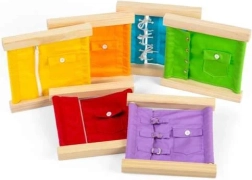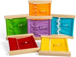 Благодарение на различните видове закопчаване децата безопасно овладяват практически умения, които ще използват всеки ден. Дървените рамки с текстил са здрави, издръжливи и изработени от FSC® дърво с акцент върху устойчивостта и безопасността.